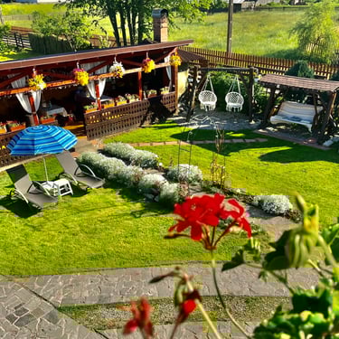 Pentru cei mici, există un loc de joacă special amenajat, unde copiii se pot distra și juca în voie. Astfel, toți oaspeții se pot bucură de atmosfera relaxantă a curții pensiunii și pot petrece timp de calitate în mijlocul naturii.
