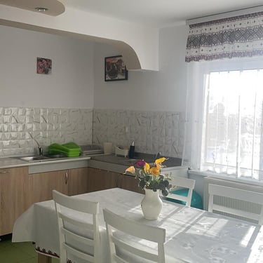Va punem la dispoziție o bucătărie complet utilată, unde va puteți pregăti și servi masă.